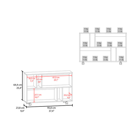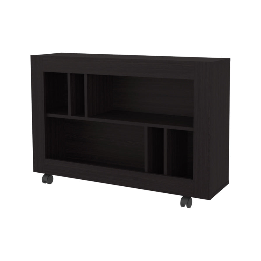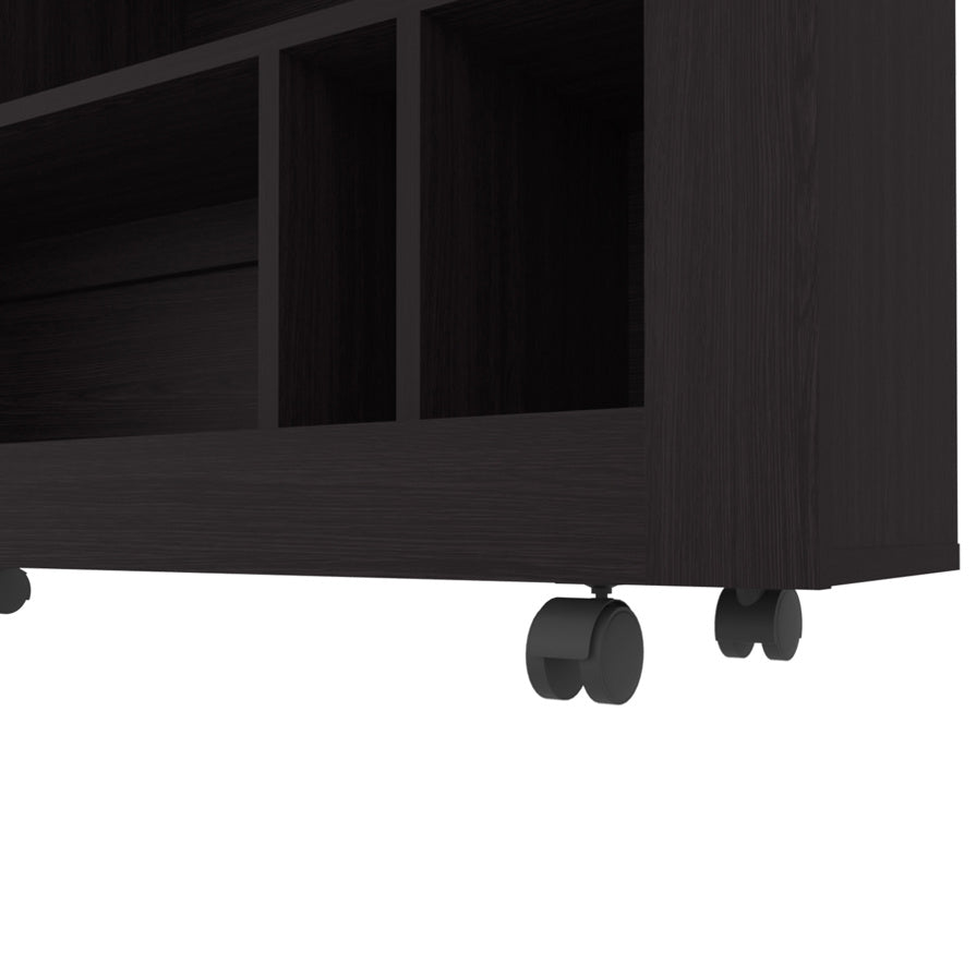 "Side Table with Open Storage and Wheels: This modern and functional side table is designed to enhance both style and practicality in your living space. It features multiple open storage compartments, ideal for displaying books, decorative items, or everyday essentials, ensuring everything is within easy reach. The sleek rectangular design adds a contemporary touch, while the durable wheels provide smooth mobility, allowing you to reposition it effortlessly wherever needed. Whether used as a compact bookshelf, a display unit, or an additional surface for your home, this side table combines elegance and versatility, making it a perfect addition to modern living rooms, offices, or multi-functional spaces.
