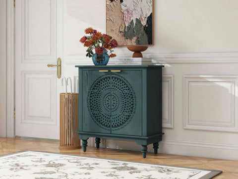 Hollow-Carved 2 Door Accent Cabinet Sideboard Buffet Storage Cabinet with Adjustable Shelf for W688P145774