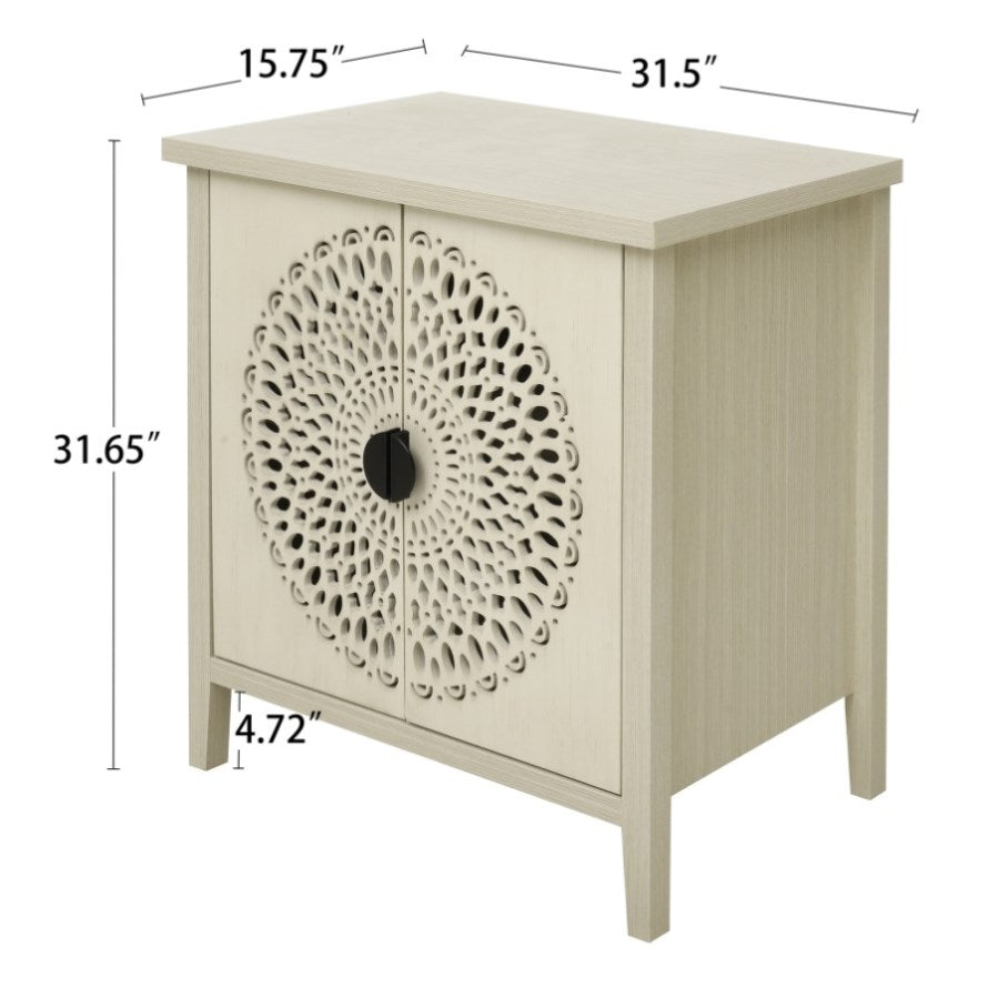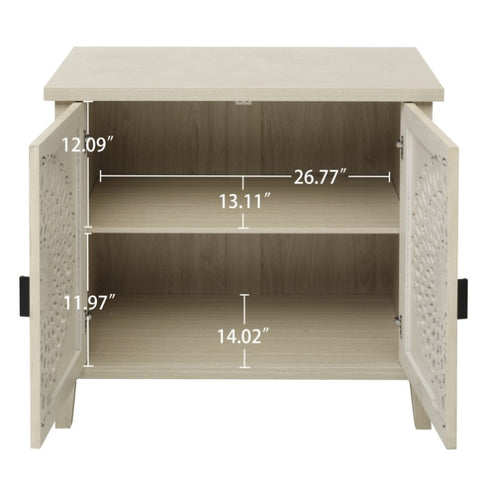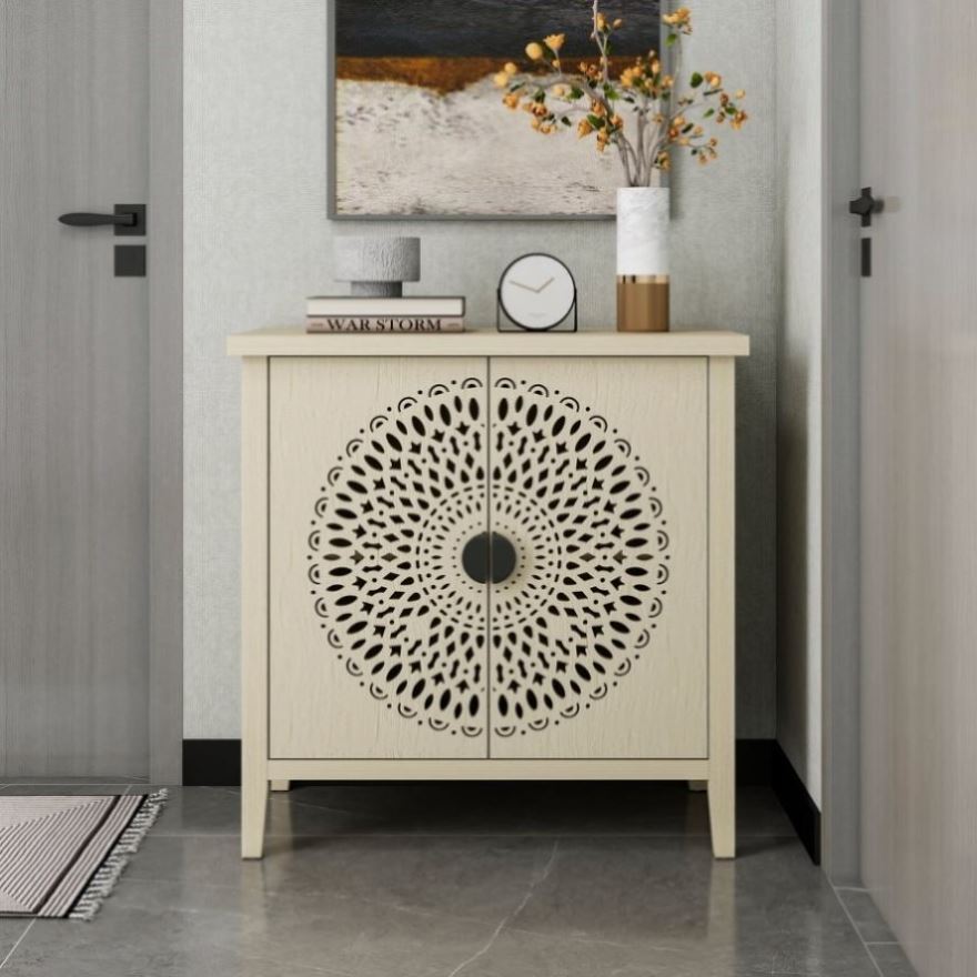 Hollow-Carved 2 Door Accent Cabinet Sideboard Buffet Storage Cabinet with Adjustable Shelf for W688P225282