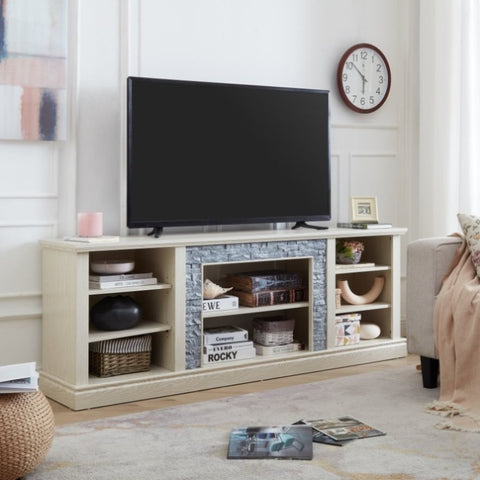 Large TV Desk Storage Rack with Faux Stacked Stone Surround,Media Console Table with Large Storage W1758P187682