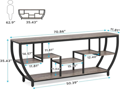 - LARGE STORAGE SPACE: Measuring 70.86’’W X 11.81’’D X 35.43’’H, the sofa table with 7 shelves offers ample platform for everything to display on, like your go-to books, framed photos, vases, artistic accents, or other decors. The unique staggered shelves bring your display space a pop of character.