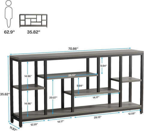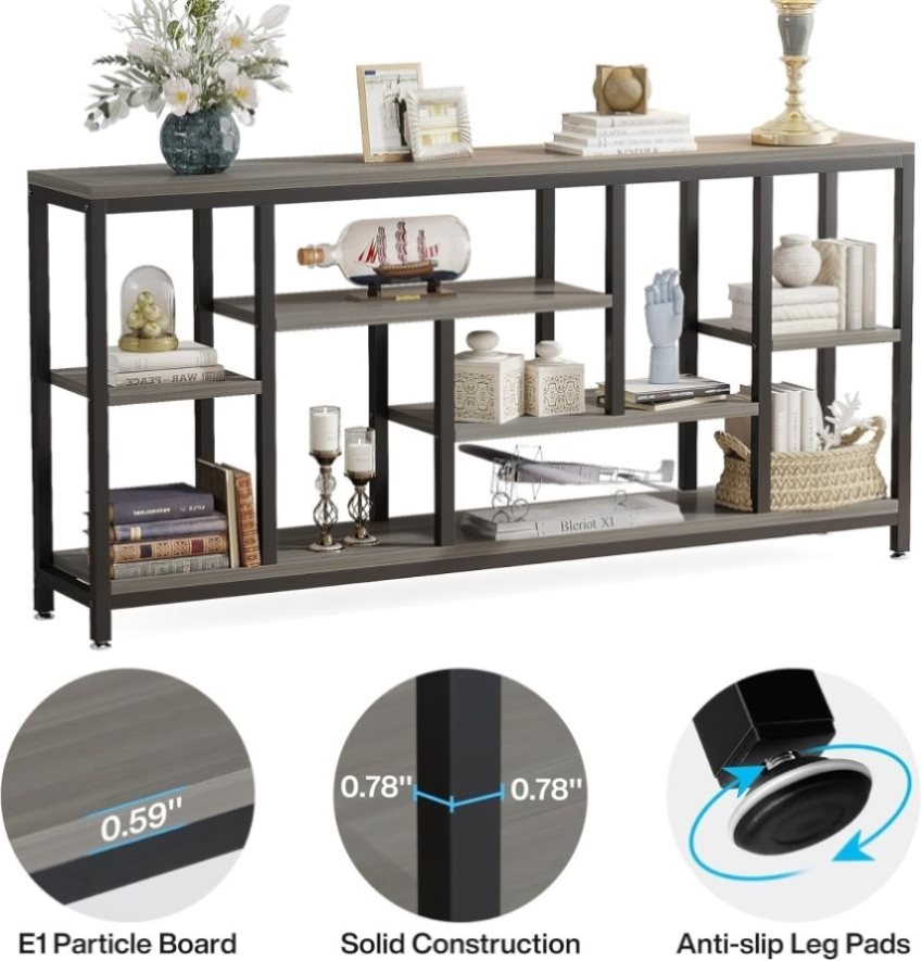 - 【More Shelves for Display & Storage】Extra long narrow tabletop(70.86” L x 11.8“W) is perfect for lamps, framed family photos, candles, books, and more. Our behind couch table with multi-staged shelves can meet your different needs while effectively help you say goodbye to disarray!
