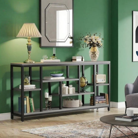 - 【Attractive Industrial Console Table】Looking for an accent table that can organize things well without losing style? The wood finish and black metal elements create an elevated look for decor while perfectly matched with industrial or modern decor. Tribesigns sofa table with multi-staged shelving that adds a pop of color to your home