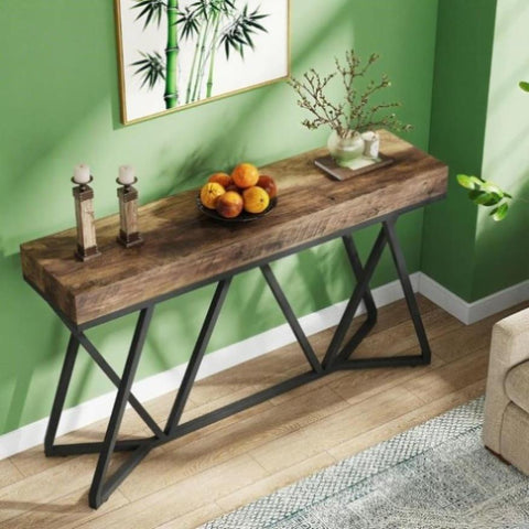 RETRO & UNIQUE DESIGN: Modern minimalism and unique design brings a pop of personality to your home. Fusing rustic natural-looking grained wood tabletop and unique black metal base, this wood-effect sofa table boasts a industrial-inspired style and aesthetics, which fits well any home decor style, no matter retro, traditional, or modern style.