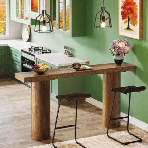 - Enjoy Relaxing Time: This bar table features a rustic, farmhouse look that creates just the right relaxing space in your bar or behind your sofa. Set cups of coffee or glasses of mellow on the large tabletop, and enjoy a good time with your family
