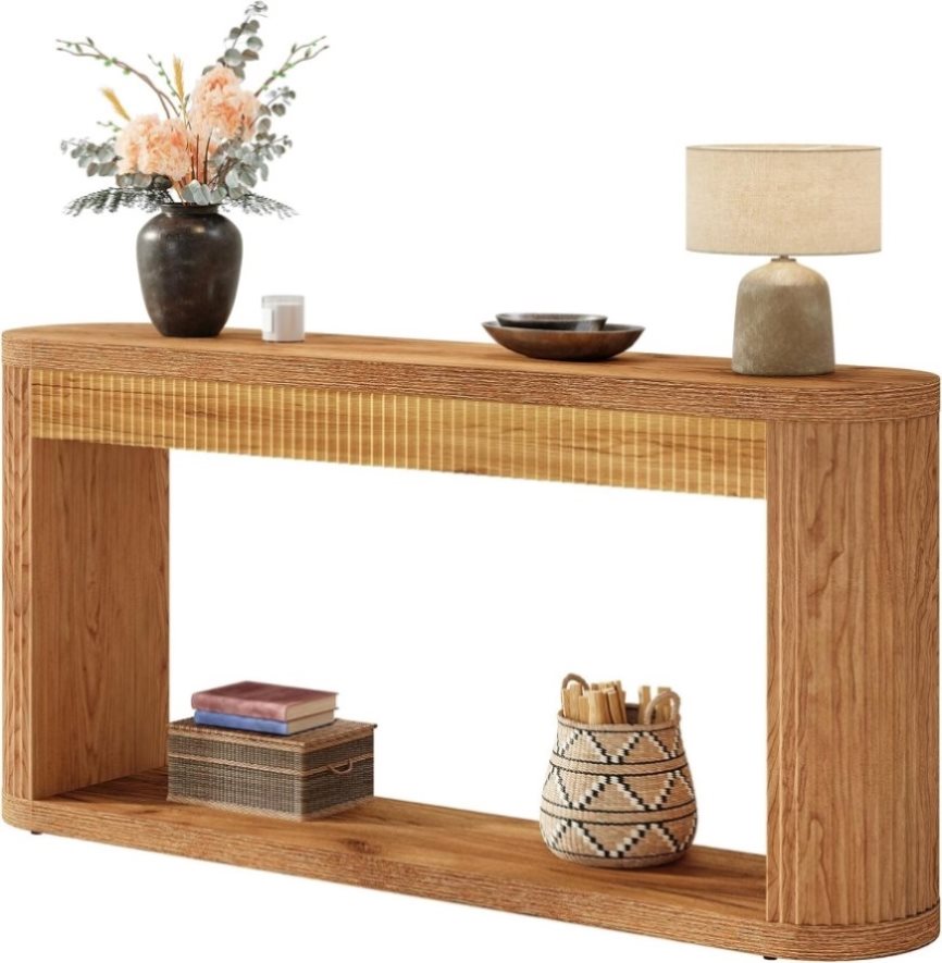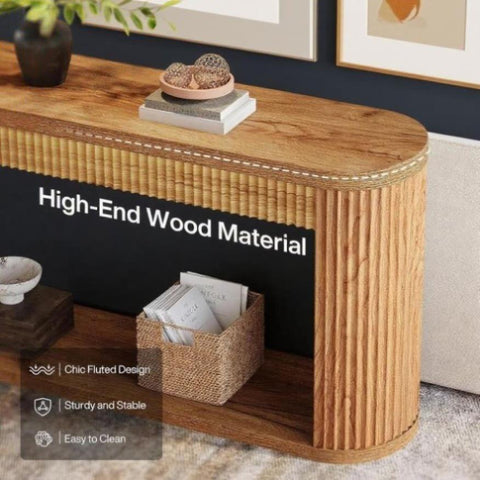 Chic Look: Upgrade your home with this entryway console. With its distinctive fluted design, and featuring unique semi-cylinder support, this industrial entryway table exudes a simple and chic appearance, showcasing an appealing charm to any home decor