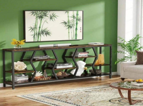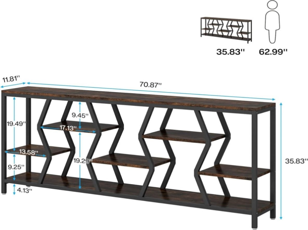 • Ample Storage Space: With its 4 tiers of open shelves and a 70.9" long tabletop, this sofa table provides ample storage space for all your needs. It is specifically designed to be placed behind couches or against walls, making it a great space-saving solution for smaller living spaces. Whether you need a place to display decorations or store books and other items, our sofa table has got you covered