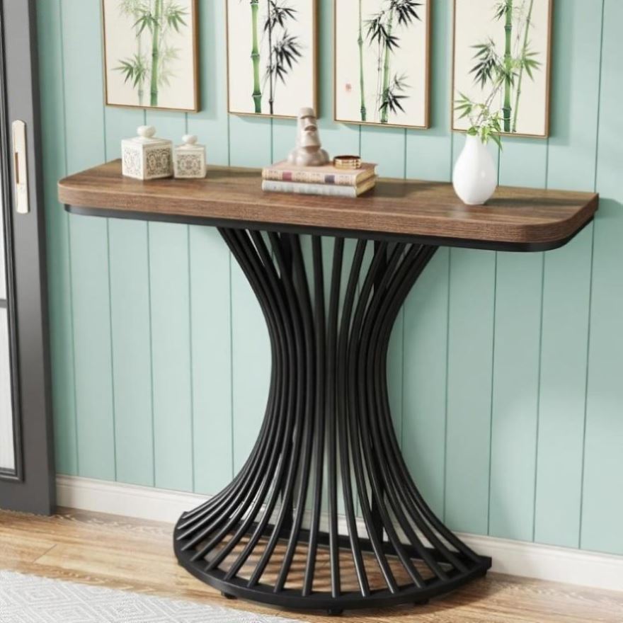 - Elegant Style: This console table uniquely combines an elegant half-moon metal base and curved lines as a support structure, seamlessly integrating with a rustic wooden tabletop. This seamless fusion makes the console table a fitting addition to most modern interiors. With its glamorous and stylish appearance, the accent table enhances your home decor elegantly.