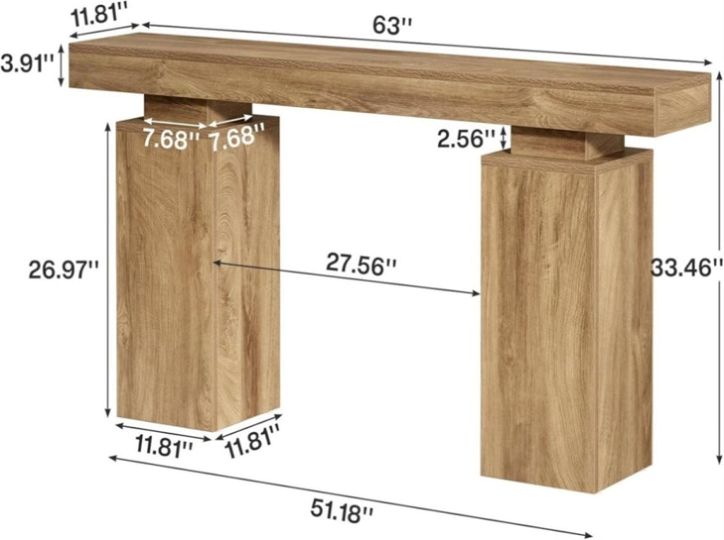 - Ample Surface Area: With dimensions of 11.81" D x 63" W, the tabletop offers plenty of space for organizing and displaying your essentials. You can easily put a vase of flowers, a stack of magazines, or a tray for keys and mail on it