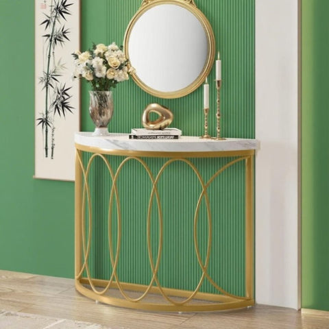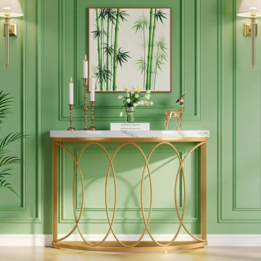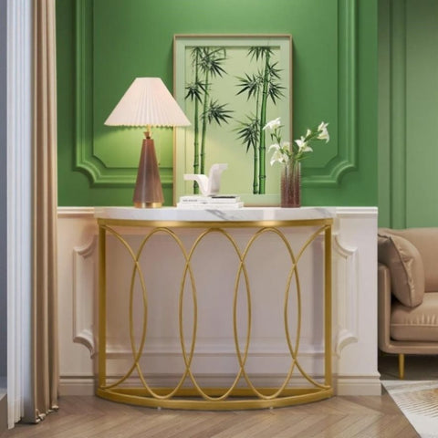 • LUXURY FAUX MARBLE TABLETOP: The entryway table features white faux marble veneer finish and geometric gold metal frame that will beautify your living space and bring a charm of luxury aesthetic. Simple style and delicate modern appearance add a unique personality, makes a perfect addition to your home.