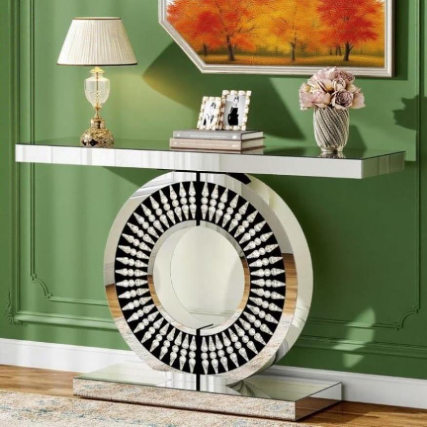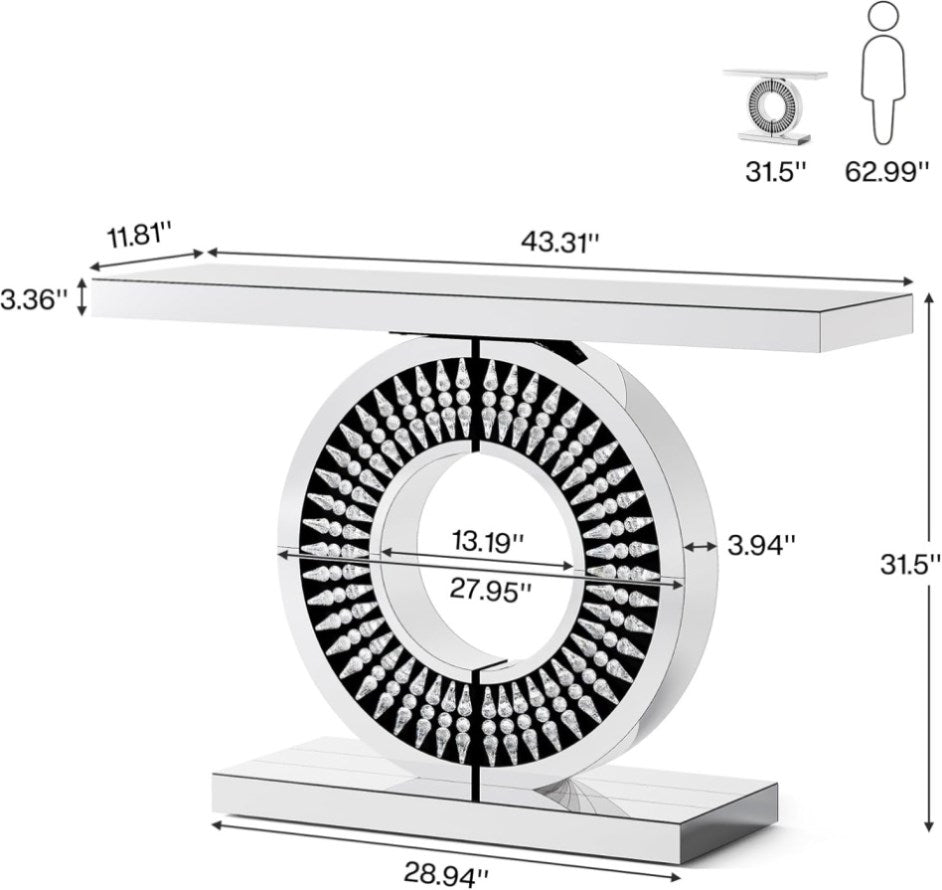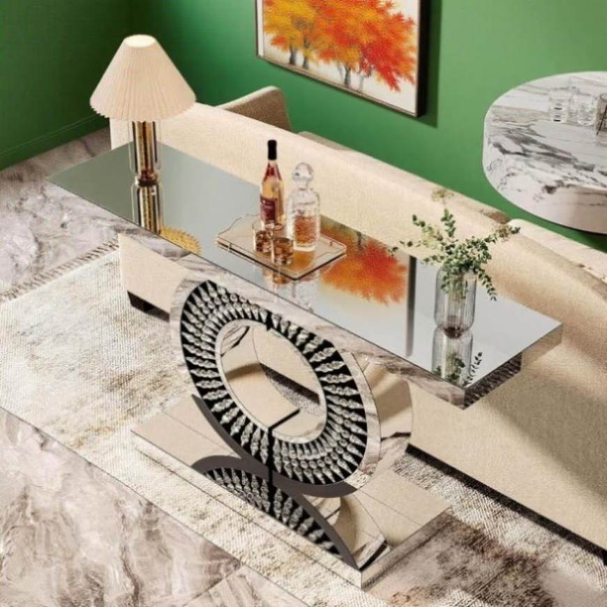 - Luxury Silver Charm: Crafted from glass, acrylic and MDF, our sofa table reflects light, ideal behind sofas or entryways. Seamlessly blending into bedrooms or offices, it adds an air of modern elegance