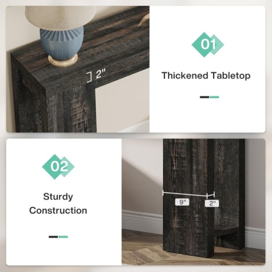 - 【Robust & Stable Construction】: Made from premium E1 particleboard, this long sofa table's wood structure ensures durability and solidity for long-term use. The thickened board and frame endow the entrance table with undeniable robustness and balance, effectively supporting a weight up to an impressive 300 lb!