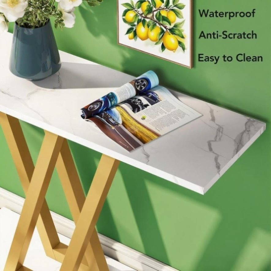 • 【Elegant & Minimalist Style】The popular but exquisite combination of gold metal tones and faux marble finish makes this narrow sofa table an instant hit in any space, especially ones based on modern design styles.