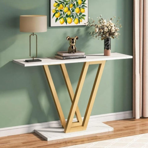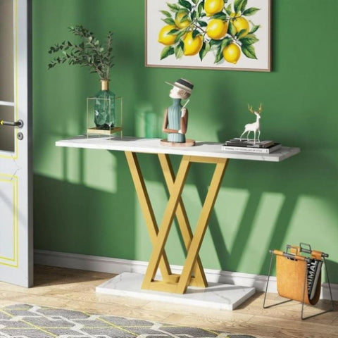 • 【Unique “V” Metal Leg】The rectangle base with “V” tubes for a dash of distinction. Thanks to its imaginative, eclectic character, all eyes will be on this small entrance table when anyone enters your interior.
