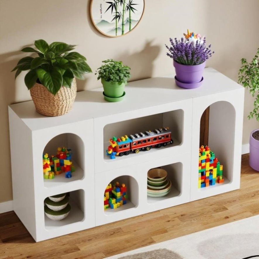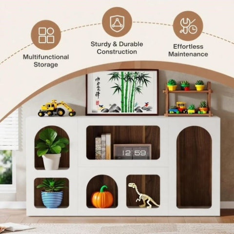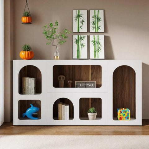 - Large Storage Space: This modern console table with 6 compartments offers abundant storage space. It's an ideal spot for displaying items like books, collectibles, magazines, vases, plants or storage boxes. The 6 storage compartments are excellent for neatly organizing your belongings.