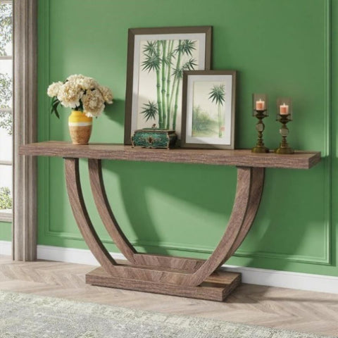 【Perfect for Farmhouse Style】- If you're a fan of vintage decor, then this farmhouse entry table is a must-have! The vintage foyer table for entryway adds an elegant touch to any space, and the wide "U" wood base gives it a unique and stylish appeal. Size: 62.99" L x 11.81" W x 31.5" H.