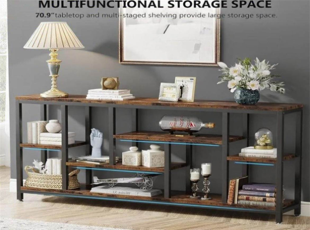 - 【More Shelves for Display & Storage】Extra long narrow tabletop(70.86” L x 11.8“W) is perfect for lamps, framed family photos, candles, books, and more. Our behind couch table with multi-staged shelves can meet your different needs while effectively help you say goodbye to disarray!
