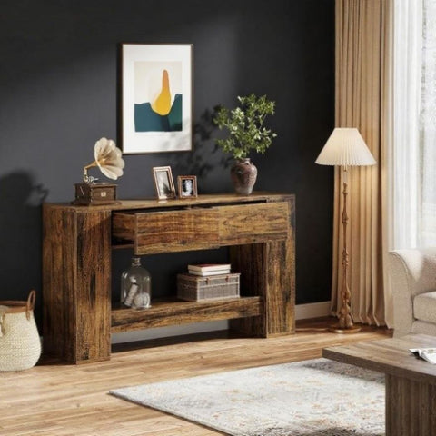 - Unique Hexahedron Design: Adorn your space with the console sofa table that boasts a captivating wood hue. The unique hexahedron leg design is an exquisite fusion of audacity and finesse, giving birth to an inspiring aesthetic appeal