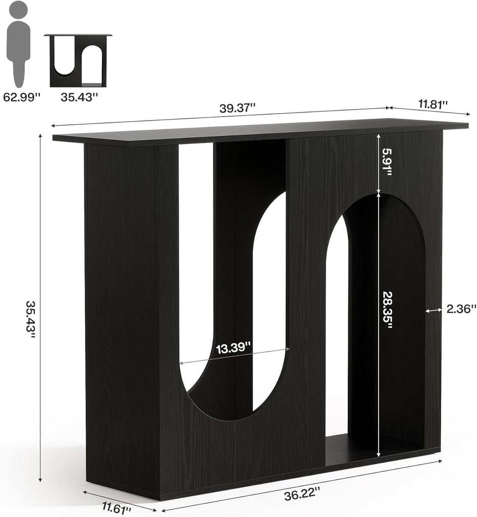 • Unique Arched Design: With its mysterious black hue, this black console table exudes elegance. Its base adopts double arch elements, enhancing minimalist design through visual impact and spatial aesthetics