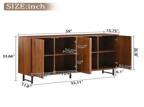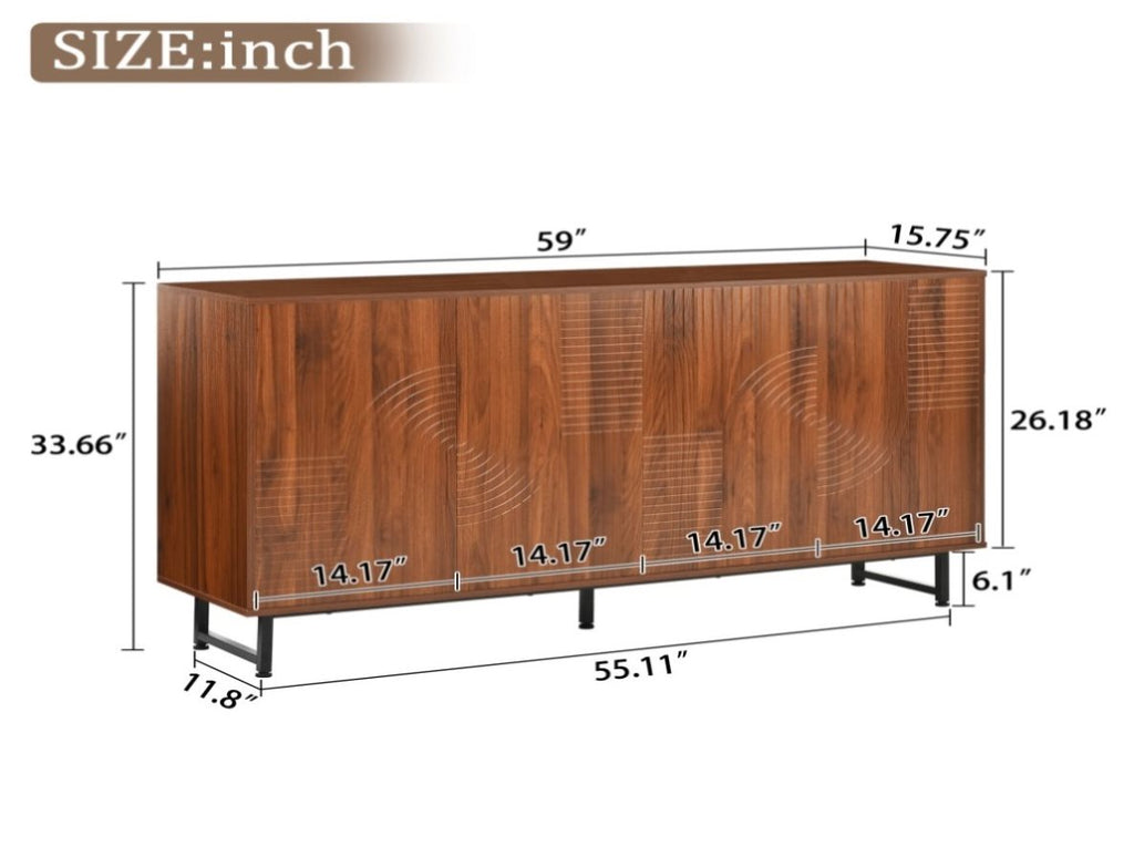 Mid-Century Modern Walnut Sideboard Buffet Cabinet, 59*16*33 inches Geometric Carved Storage Cabinet W3867P373415