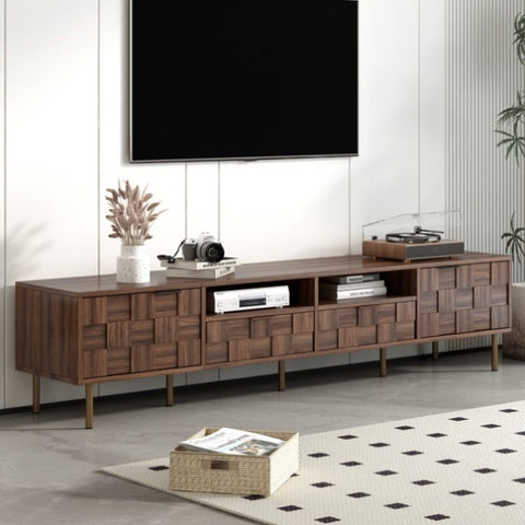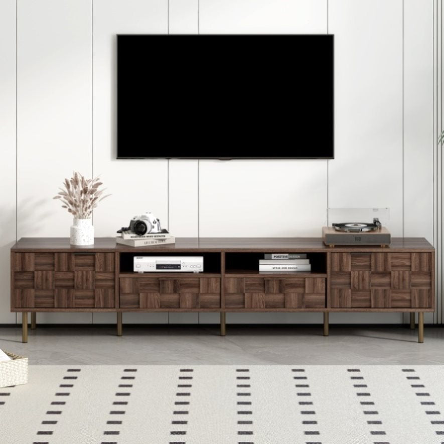 This TV cabinet is equipped with two drawers and four storage cabinets. The two closed cabinets can store seldom-used items to keep the space neat and tidy, while the two open cabinets can display your favorite ornaments or books, adding a sense of layering and visual beauty to the space.