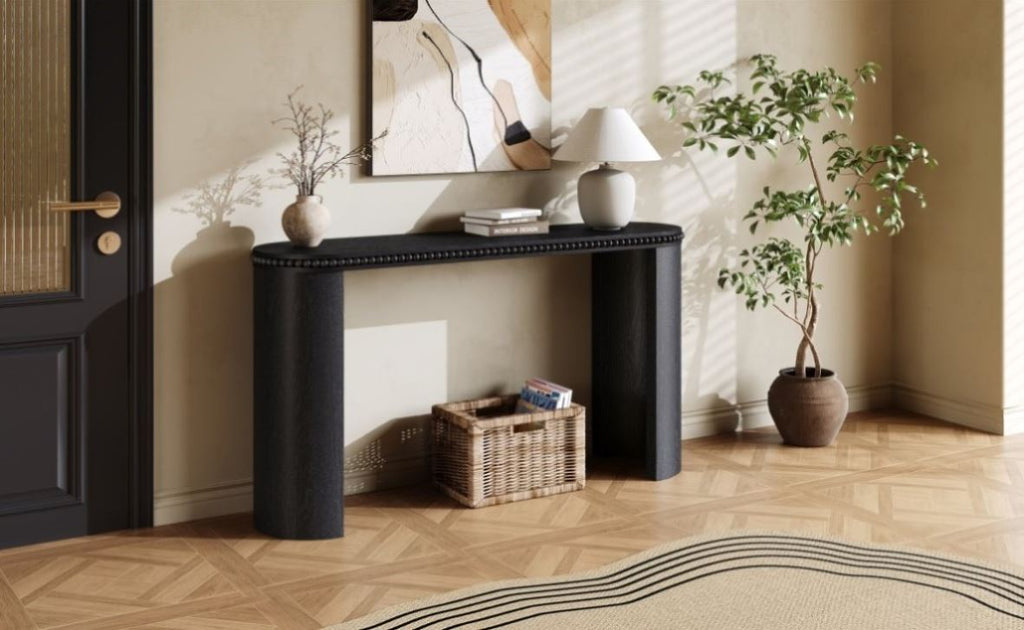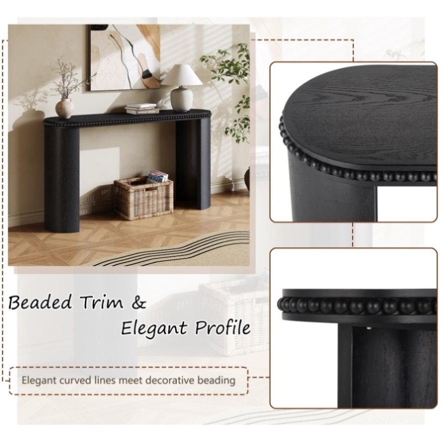 Elegant Beaded Detailing and Clean Silhouette: Featuring a gently curved profile and a decorative beaded trim along the tabletop, this console table blends classical charm with minimalist elegance—perfect for refined spaces.
