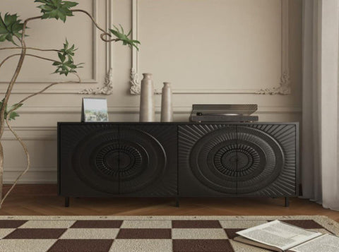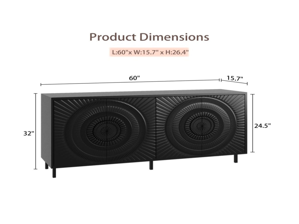 VERSATILE & LUXURIOUS: The Weselon Storage Sideboard Cabinet with blister doors combines functionality and elegance, making it a versatile addition to any living space or hallway. With its intricate eye-catching sun design, making this accent cabinet a focal point and adding a touch of sophistication to your home decor.