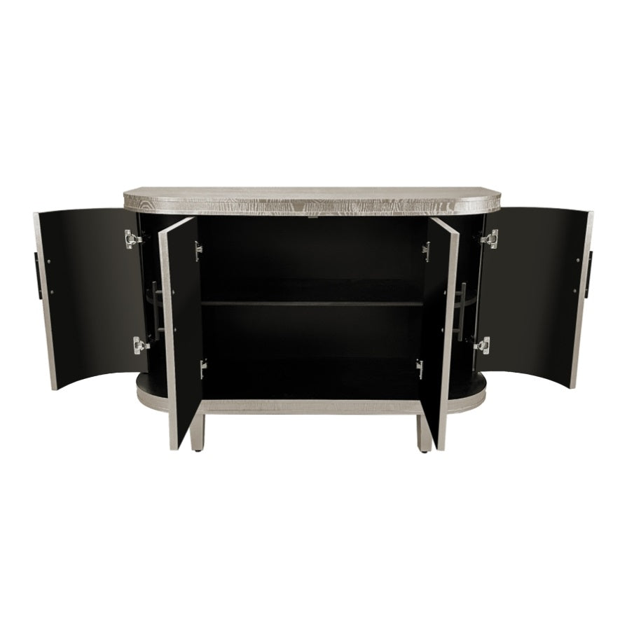 This is a simple and stylish cabinet with great storage and practicality. Not only that, the cabinet is equipped with adjustable shelves inside, so you can freely customize the storage solution and also have enough space to store some small items or some books. Besides practicality, the distinctive exterior design is also eye-catching. Simple line design, zinc alloy handles and curved edge design make the whole cabinet look stylish and textured.