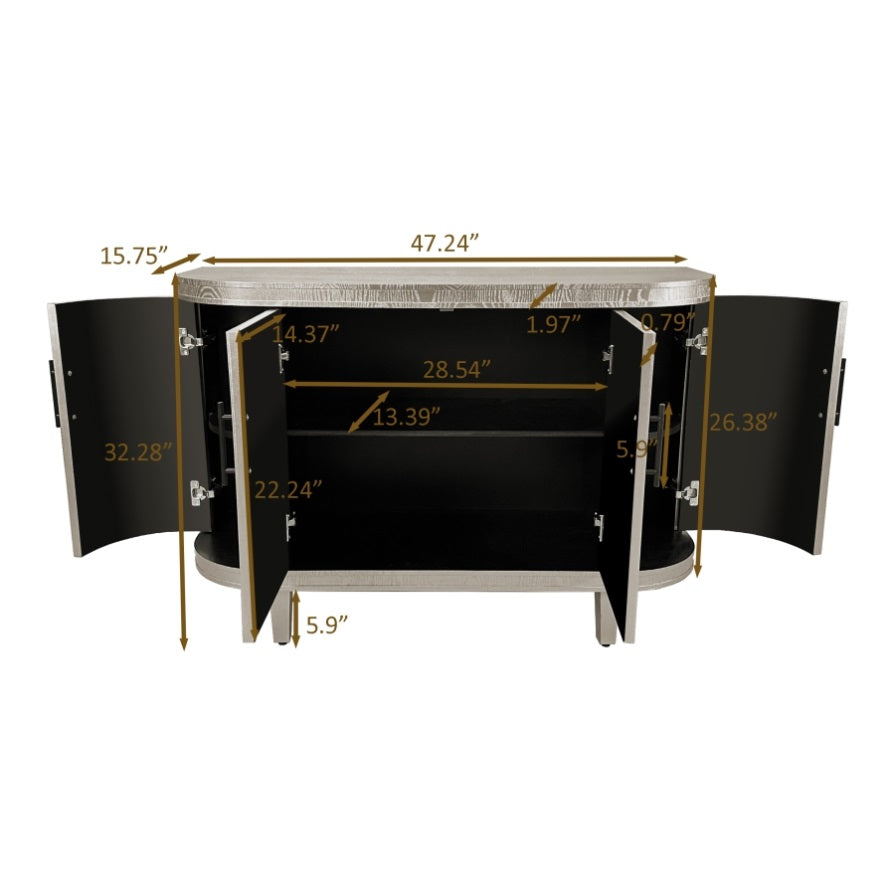 Modern Curved Sideboard 47.2-Inch Decorative Storage Cabinet Wooden Console Table Coffee Bar Cabinet W757P190336