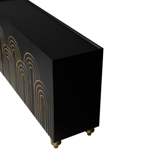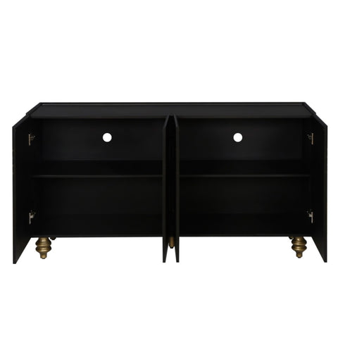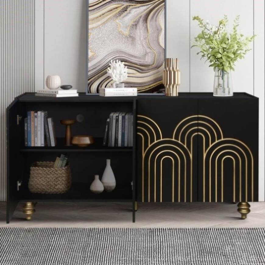 Modern groove gold regular line 4-door cabinet with its multiple design elements and practical functions, become a bright landscape in the home space Golden regular line design Adjustable shelves and pre-wire holes Groove cabinet design and gold gourd feet decoration, together to create a beautiful and practical storage space Whether it is used as a TV cabinet, cabinet or living room storage cabinets, such cabinets are able to show the owner's taste for home decoration.