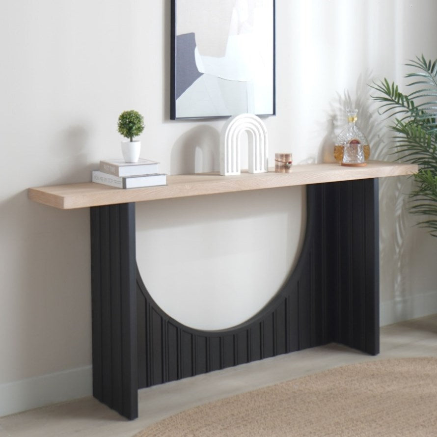 Modern Minimalist Console Table with Black Arch Base and Natural Wood Top,66in Length Console W2729P199007
