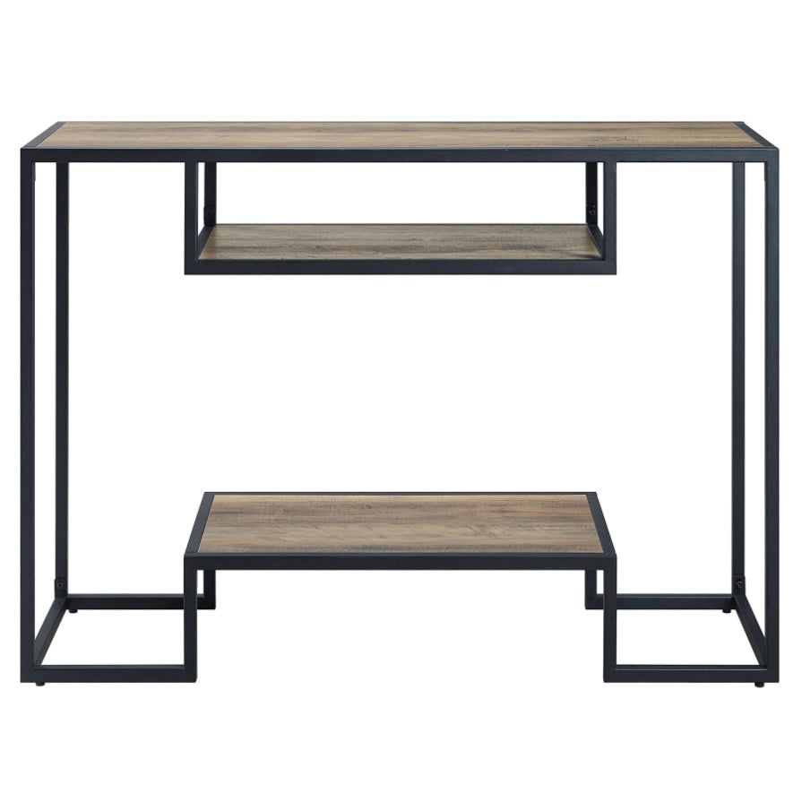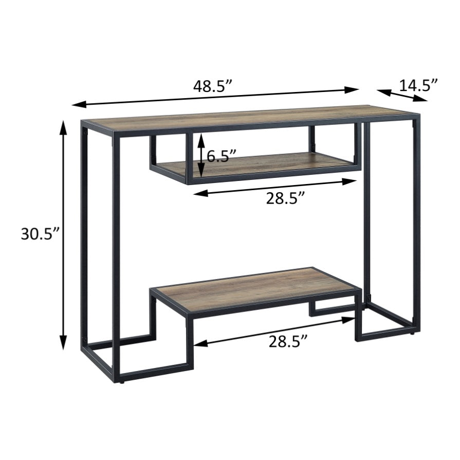 Rustic Oak and Black Console Table with 2 Shelves B062P185673