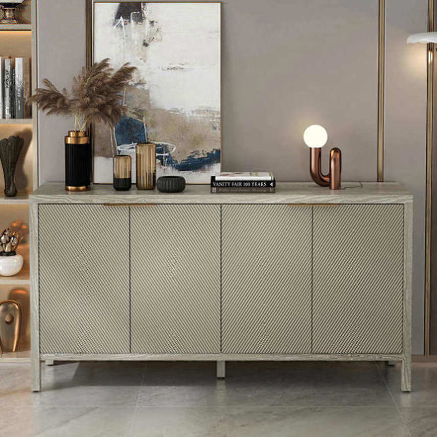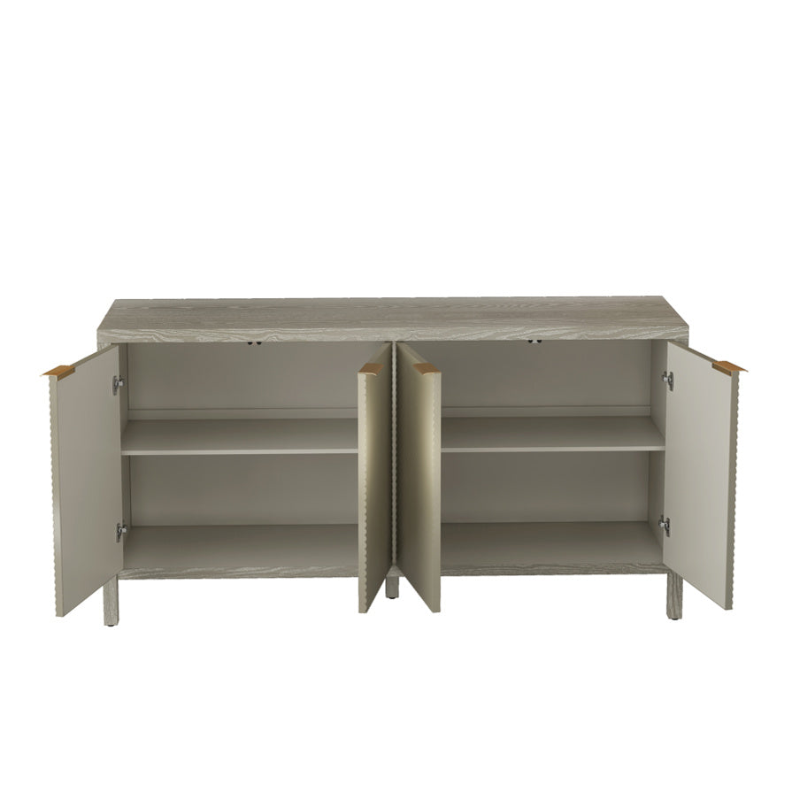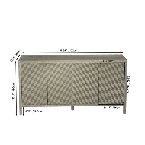 MODERN DINING SIDEBOARD: This 60-inch buffet features fully concealed hinges to maintain a minimalist look, and the four doors are designed with a beautiful and unique embossed pattern for a modern aesthetic, perfect for high-end home decor; it can be used as a sideboard in the dining room, a TV stand or a decorative cabinet in the living room, an entryway table with storage, or a display cabinet in the office.
