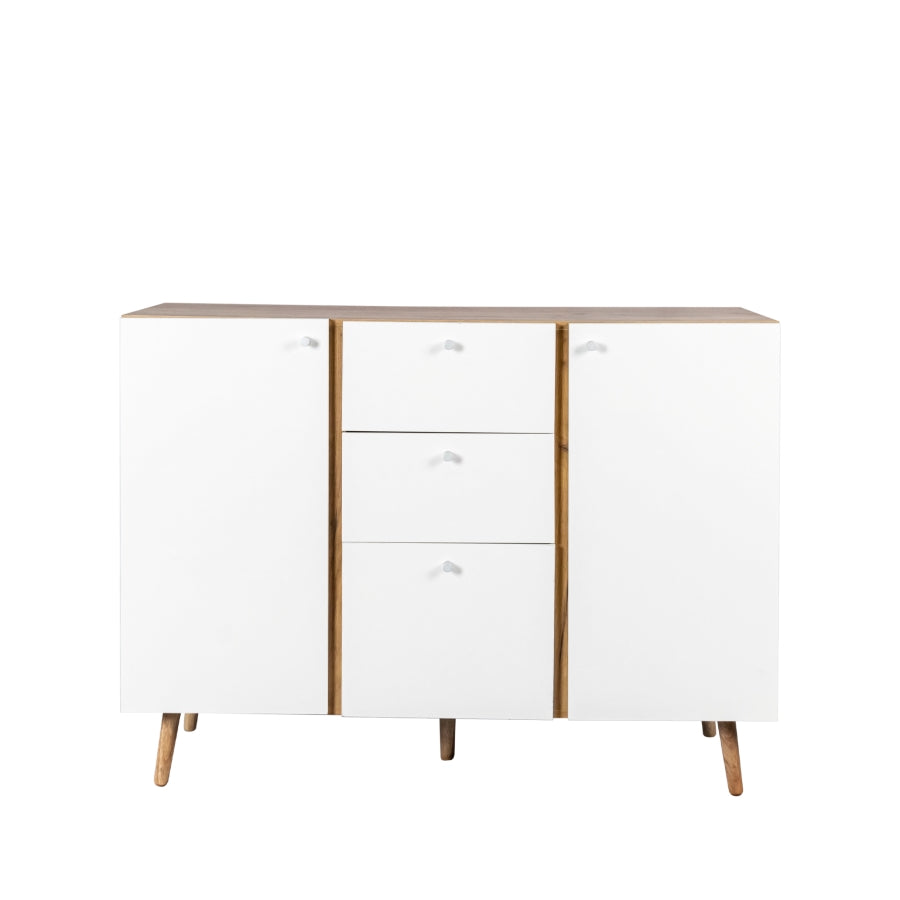 This sideboard cabinet features 2 tiers shelf behind each door, to store all your dinning ware, tableware, books or media accessories. Full sized drawers are roomy to store infrequently used items out of sight