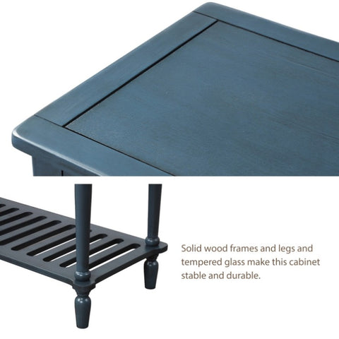 TREXM Sideboard Console Table with Bottom Shelf, Farmhouse Wood/Glass Buffet Storage Cabinet Living Room (Antique Navy)