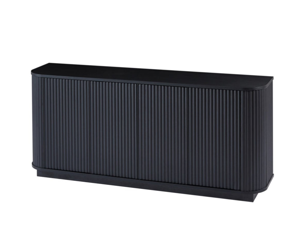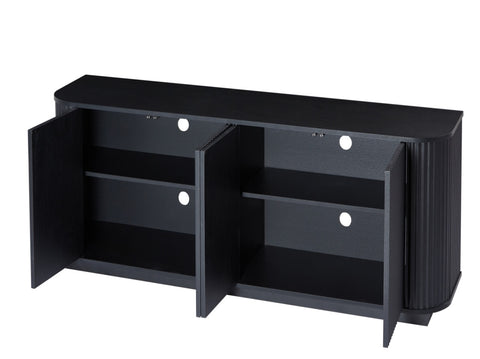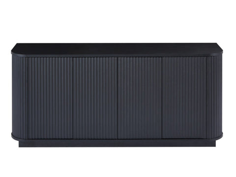 Contemporary style sideboard with a wave pattern design on the face of the cabinet and heavy duty curved panels on the sides of the cabinet, the entire cabinet has a simple and classic look that blends perfectly into your room.