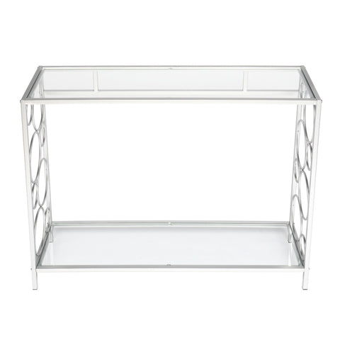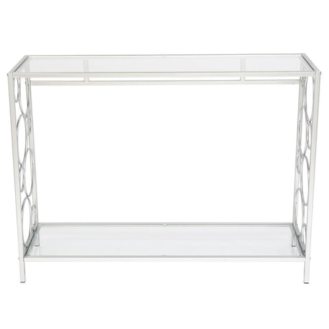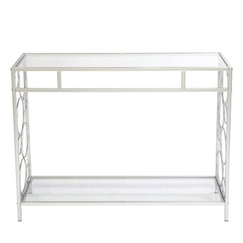 Bring a simplistic, modern style to your house with this FCH Toughened Glass Panel Console Table! The table made of high quality material to showcase your picture frames, books, flowers, candlesticks, and more. Simplistic design creates a clean, concise look and feel. Compact dimensions make this table a convenient and stylish addition to any space. It will fit perfectly into your home with its diverse use of an entryway table or sofa table.