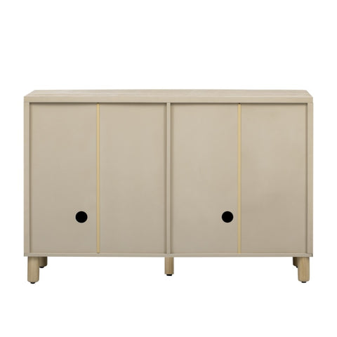Equipped with adjustable shelves with three height options, this 4-door buffet cabinet offers ample space for dinnerware, books, or household essentials. The back panel features a built-in cable management hole, allowing you to neatly organize and conceal wires, making it perfect for housing electronics, coffee machines, or media devices.
