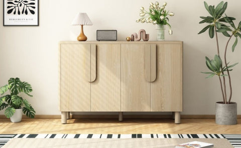 Stylish Design: This sideboard buffet cabinet features a natural wood grain surface with an elegant ash veneer finish. The standout feature is its uniquely designed arc handles, which blend seamlessly into the cabinet doors, creating a sleek, minimalist look while ensuring effortless operation.