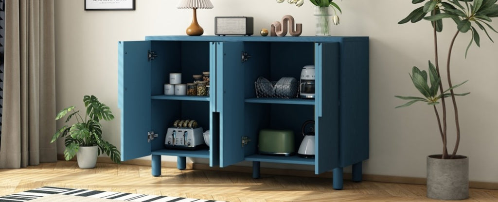 Equipped with adjustable shelves with three height options, this 4-door buffet cabinet offers ample space for dinnerware, books, or household essentials. The back panel features a built-in cable management hole, allowing you to neatly organize and conceal wires, making it perfect for housing electronics, coffee machines, or media devices.