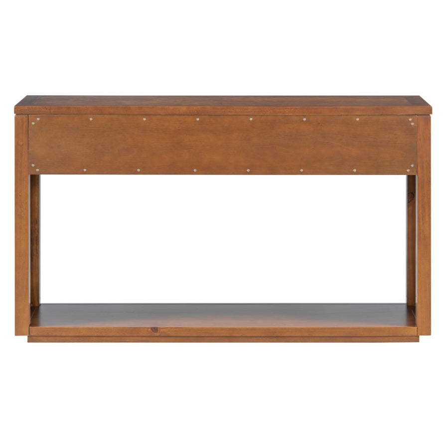 Durable Construction with Open Shelf: Built with a sturdy wooden frame, this console table is designed for long-lasting use. The open lower shelf provides additional space to display decor items, books, or storage baskets, blending functionality with style. Its robust construction ensures stability, making it an ideal piece for entryways or living rooms.