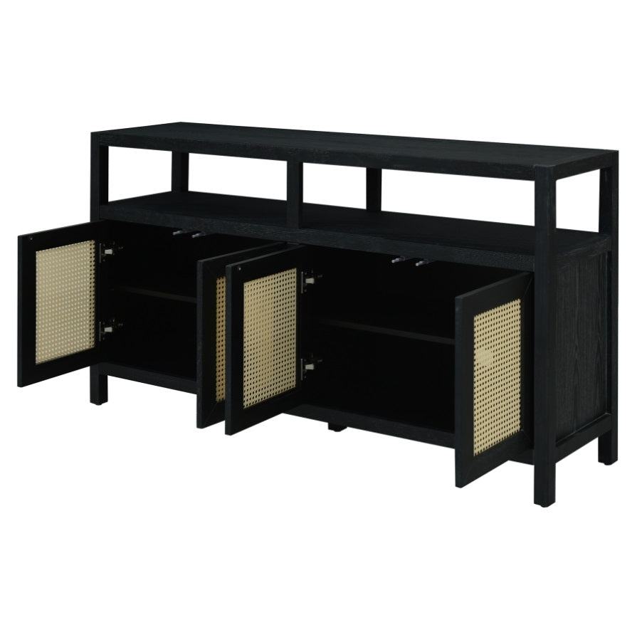 Open shelf offer easy access to decor, books, or daily essentials, while the interior features 3-position adjustable shelves to customize height for tall vases, dinnerware, or storage bins. The concealed cabinet with rattan doors hides clutter, supported by a 250LBS top panel and 60LBS weight capacity per shelf—ideal for organizing heavy items in high-use living and dining areas.