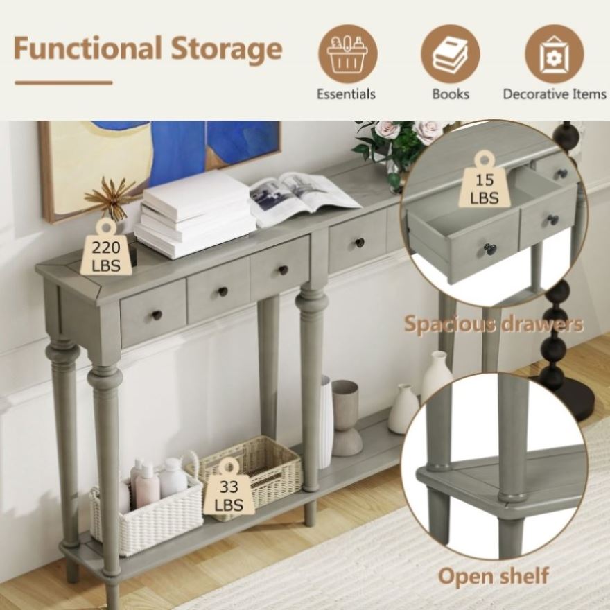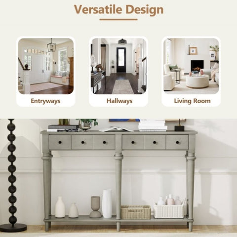 TREXM Entryway Table with 4 Drawers, Retro Console Table with Open Shelf for Entryways, Living N715P202860E
