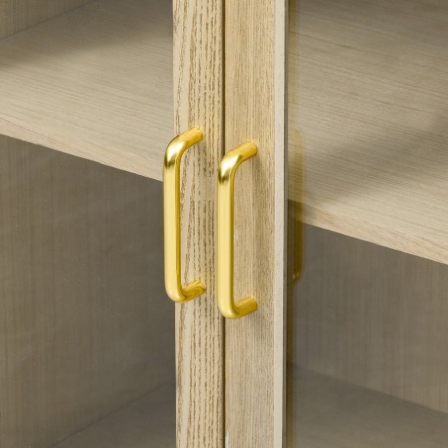 Elegant Glass DoorsThis stylish sideboard buffet cabinet features four sturdy tempered glass doors with smooth magnetic closure, offering both protection and a clear view of your displayed items. The glass ensures your favorite china, vinyl records, or collectibles remain dust-free while beautifully showcased. And the minimalist metal handles add a touch of modern sophistication.