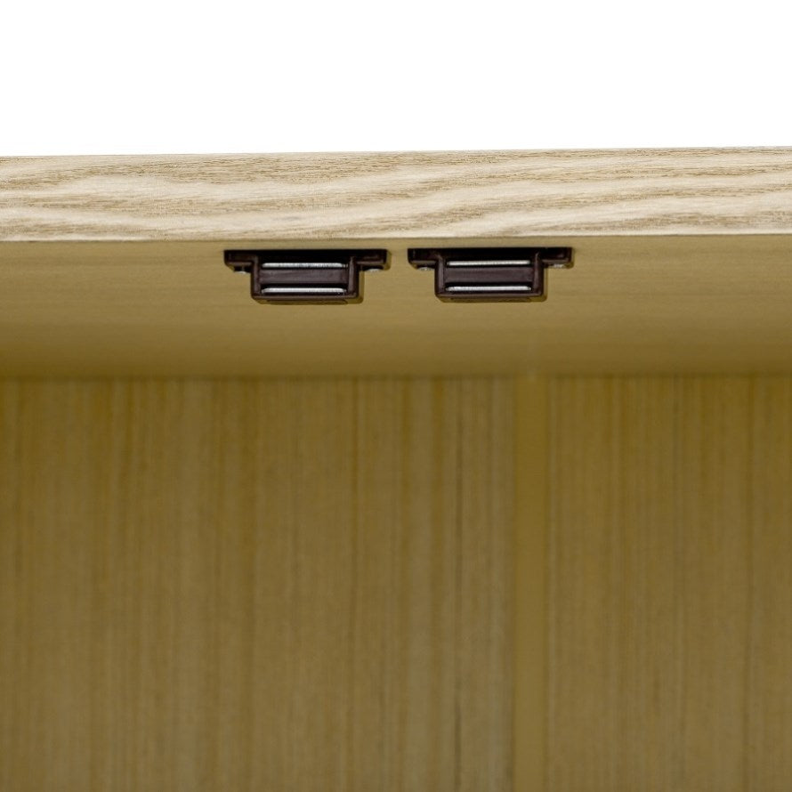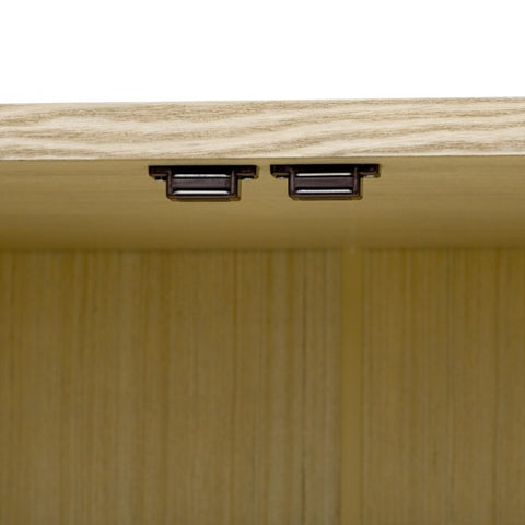 Inside, you’ll find two adjustable shelves with three height settings, allowing you to customize storage for dishes, books, electronics, or decor. Thoughtful cable management holes on the shelves and back panel keep wires neatly organized. Crafted with real wood veneer surfaces and supported by solid pine wood legs, this cabinet is built to withstand daily use while adding warmth to your space.