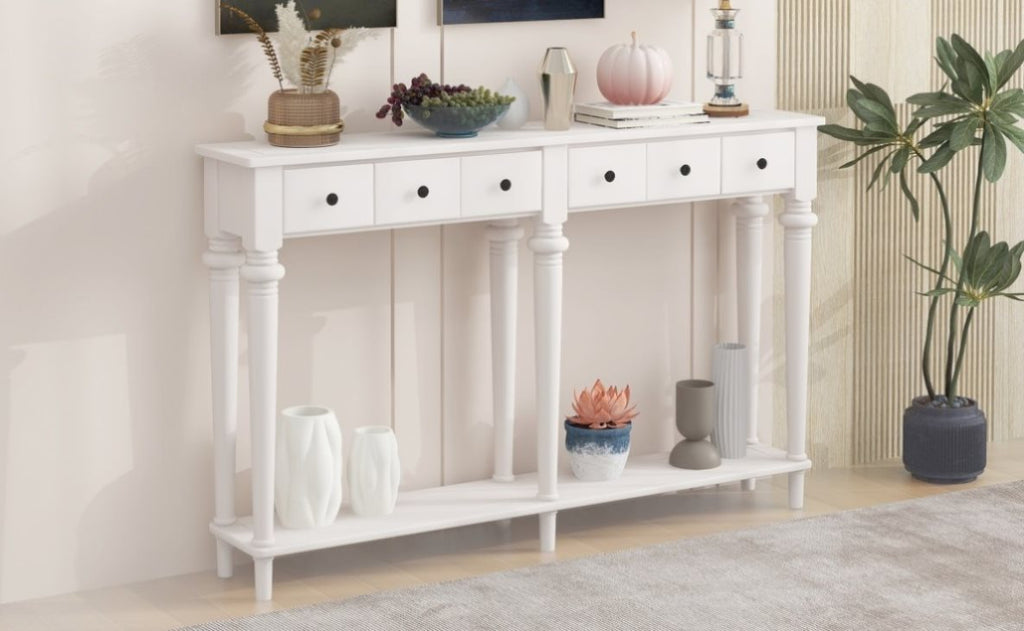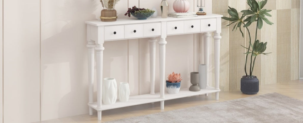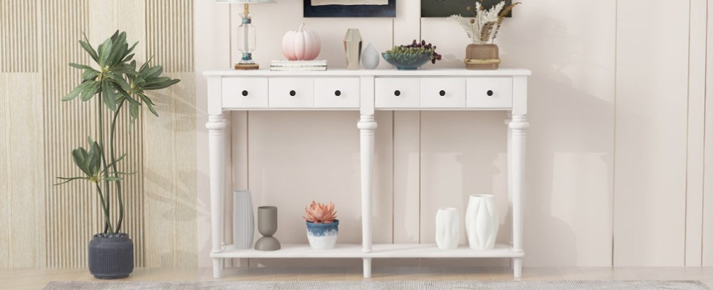 Functional Storage: With spacious drawers and an open shelf, the console table provides ample space for organizing essentials or displaying decorative items. This thoughtful design enhances both the table's functionality and the overall style of your space.