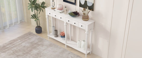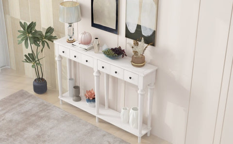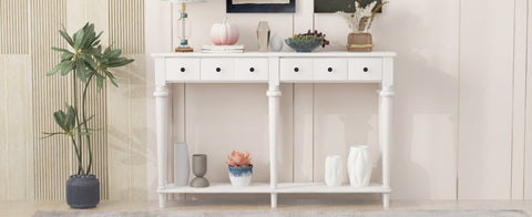 TREXM Retro Console Table with 4 Drawers and Open Shelf, perfect for Entryways, Living Rooms, and N715P202860K