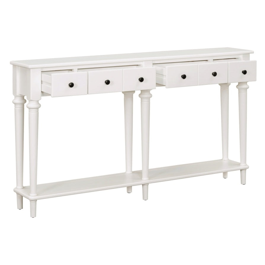 Vintage Charm: Featuring a rustic pine veneer finish and distressed glaze, this console table showcases vintage craftsmanship. Slim legs and four drawers bring traditional elegance, blending effortlessly into various interior styles. Available in 4 colors: old pine, white, navy blue and espresso.