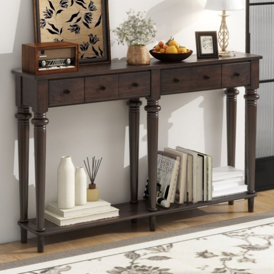 TREXM Retro Console Table with 4 Drawers and Open Shelf, perfect for Entryways, Living Rooms, and N715P202860P