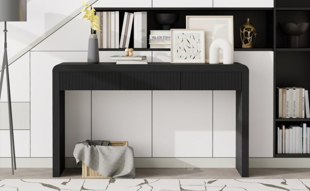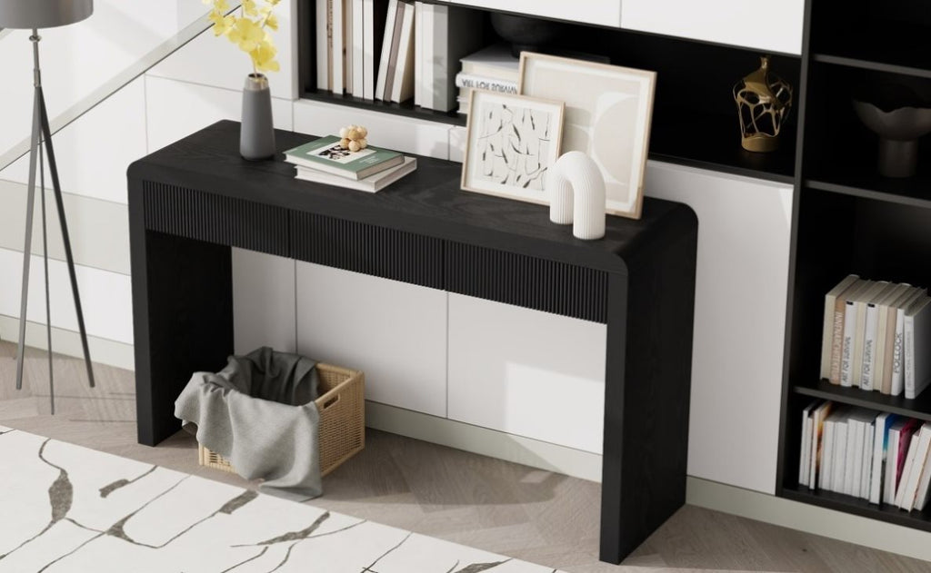 Versatile Fluted Drawer Design: Each drawer holds 25 LBS, offering ample storage for books, or office supplies. The fluted drawer fronts add depth without handles, maintaining a clean aesthetic. The drawer’s interior is smooth and roomy, this table is perfect for organizing clutter while keeping your space stylish. Ideal for stairwells or hallway, this entryway table combine functionality with on-trend design.